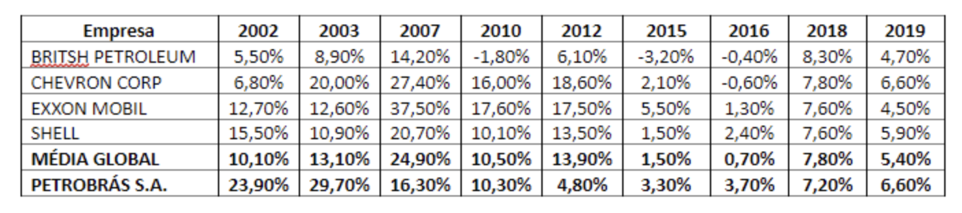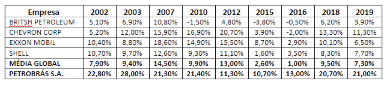Tabela 2: Retorno do Capital Investido (ROIC) da Petrobrás e Petrolíferas Estrangeiras de Capital Privado
