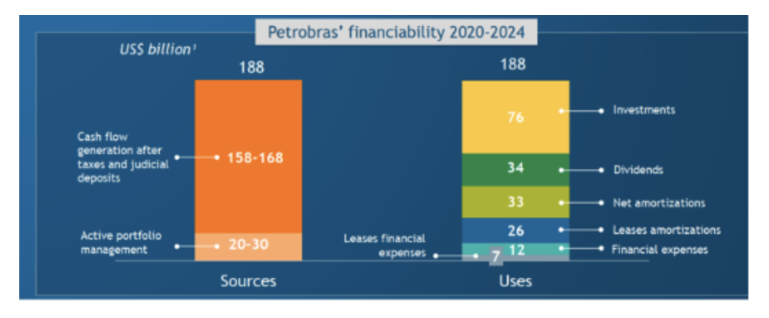 O plano prevê que para cobrir gastos de US$ 34 bilhões em dividendos no período 2020-2024, a direção da Petrobrás pretende vender US$ 30 bilhões em ativos.