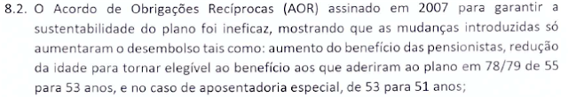 Nós temos essa mesma opinião, mas que, ainda, não é compartilhada pelos companheiros da FUP em sua plenitude, por motivos óbvios. Mas a ineficácia do AOR se apresenta em um ambiente específico de desequilíbrio atuarial desfavorável ao PPSP. Isso acontece, em nossa opinião, e temos demonstrado esse efeito a todos os companheiros, por que o AOR e os consequentes TCFs (Termos de Compromisso Financeiros que são três: FAT/FC – financeiro, Pré-70 – atuarial e Diferença de Pensão – atuarial) não foram concebidos para absorver desequilíbrios atuariais provocados por perdas nos investimentos do plano.