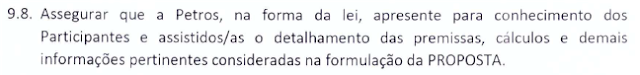Isso é uma obrigação legal da Petros e assim que a Proposta Unificada, já formatada em seus números finais, for aprovada pelos órgãos competentes, será apresentada aos participantes.