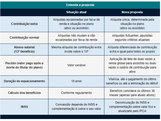 A proposta será apresentada nesta quarta-feira (23/10) a um fórum de entidades representativas dos participantes e assistidos e seguirá, então, para as suas respectivas assembleias sindicais e associativas.