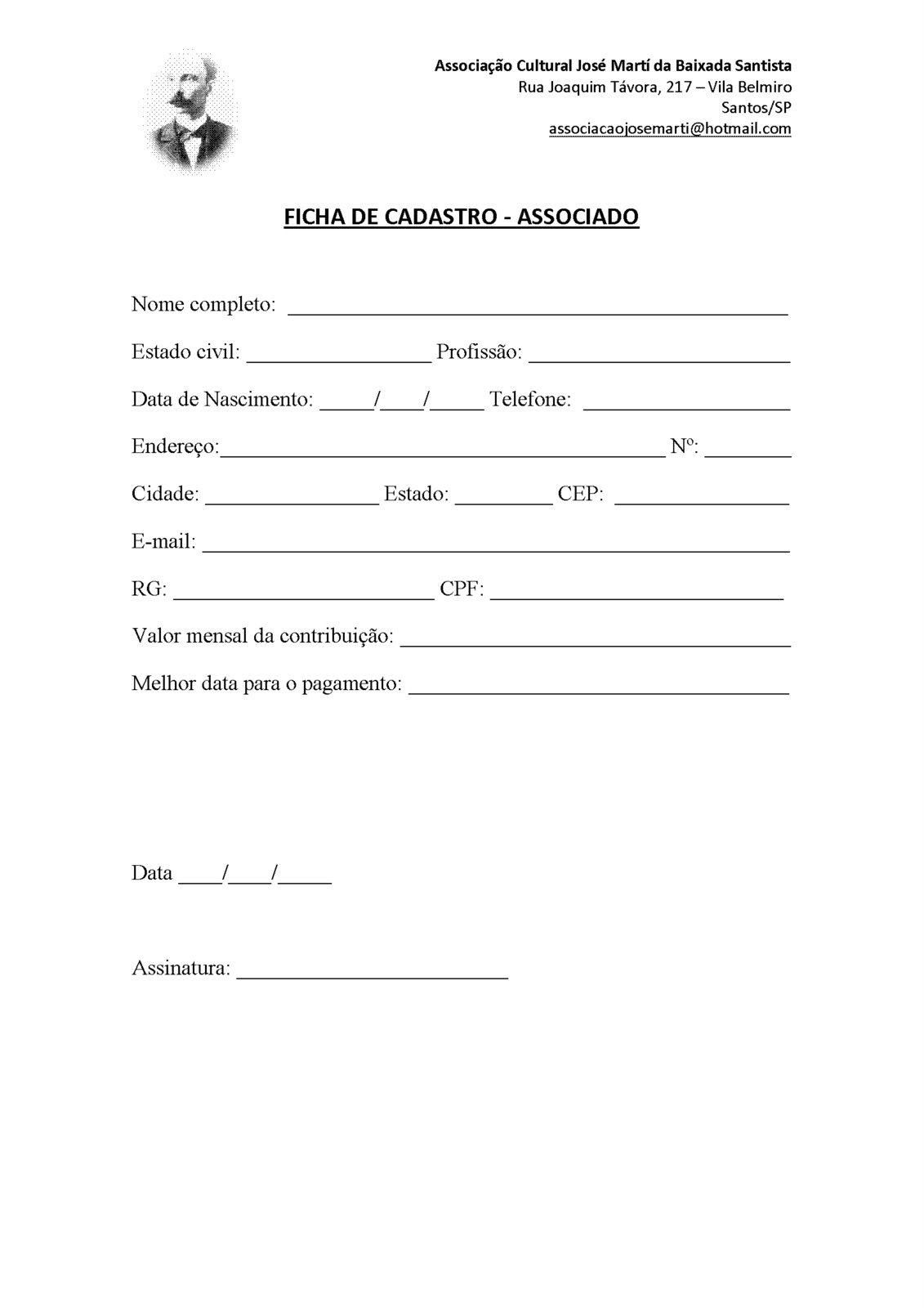 Para se tornar um associado da José Martir basta preencher a ficha de adesão (clique aqui) e enviar para o e-mail josemarticultural@gmail.com. Outra forma de contribuição é fazer doações através da vaquinha virtual (clique aqui).