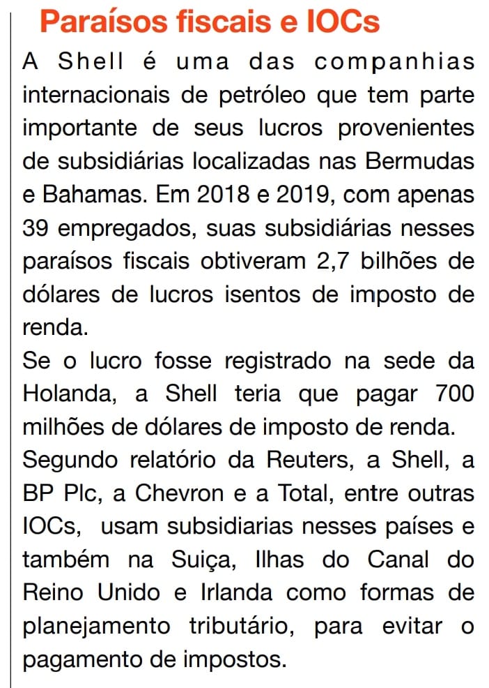 É para essas petroleiras (IOCs - Corporações Internacionais de Óleo) que os diretores entreguistas da Petrobras e ANP estão repassando as nossas empresas e riquezas do setor petróleo, com o argumento de reduzir a corrupção, como se sonegação fosse virtude. O volume de sonegação das IOC nos paraísos fiscais é uma aberração. Duplo crime de lesa-pátria.