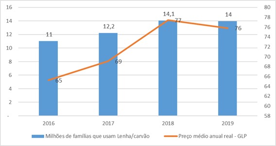 Apesar de lenha e carvão serem fontes de energia presentes nas residências do país, a sua utilização tem uma correlação muito forte com o preço do gás de cozinha. Isto é, não é a vontade particular das pessoas de cozinharem utilizando lenha e carvão, e sim o preço da opção mais eficiente e limpa (o GLP) que determina grande parte do montante de famílias que lançarão mão desta opção.