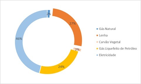 Como podemos ver no Gráfico 3, as residências do país têm uma matriz energética dividida entre energia elétrica (46%), lenha (27%), GLP (24%) e gás natural e carvão vegetal (2% cada). Mas para a cocção, os meios mais comuns são o GLP e a lenha/carvão.