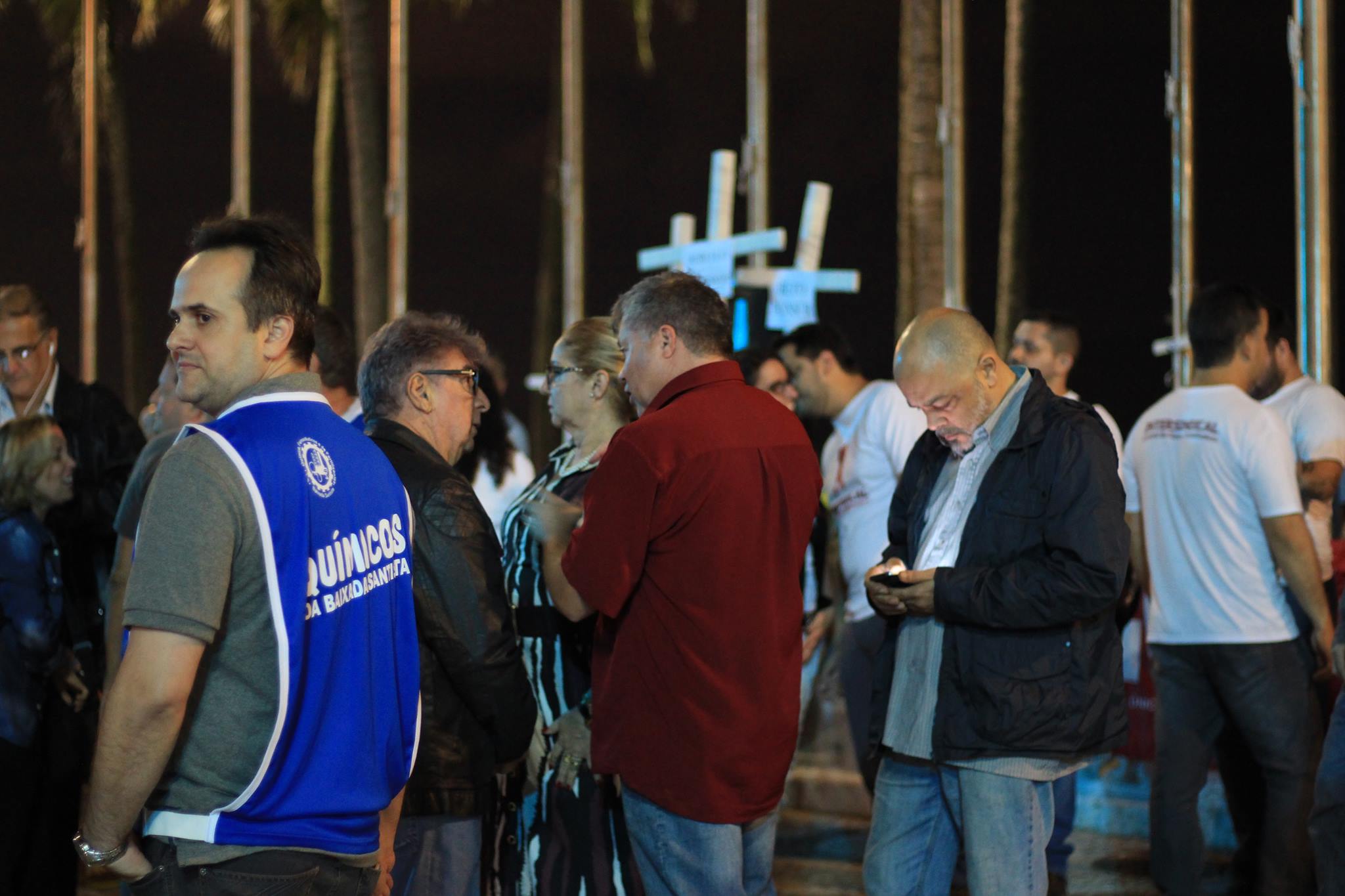 Cruzes com os nomes e fotos dos três deputados da região que votaram pelas reformas, João Paulo Tavares Papa (PSDB), Beto Mansur (PRB) e Marcelo Squassoni (PRB), foram destacadas das demais como forma de alertar o eleitorado desses políticos, que desaprovam as reformas.