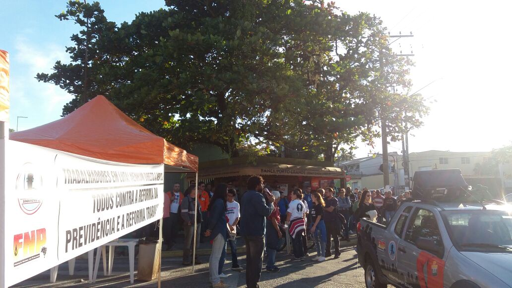 No Tebar, em São Sebastião, os ônibus também chegaram completamente vazios. Logo pela manhã, às 8 horas, a operação foi entregue à contingência. Foram parte importante da mobilização, em solidariedade, dirigentes de diversas categorias e entidades, como servidores municipais, portuários, construção civil, Apeoesp, OAB, Sindiprev, trabalhadores do Ministério Público Federal, estudantes e artistas, além de representantes do Fórum Sindical da Região.