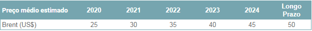 Como se pode observar, os preços reais ficaram muito acima das estimativas utilizadas pela estatal. Uma estimativa do Instituto de Estudos Estratégicos de Petróleo, Gás Natural e Biocombustíveis (Ineep) aponta que os preços médios em 2020 devem ficar um pouco acima de 35 dólares por barril. Foi essa estimativa de valor para o ano de 2020 que a Shell, por exemplo, utilizou para realizar seus testes de impairments.
