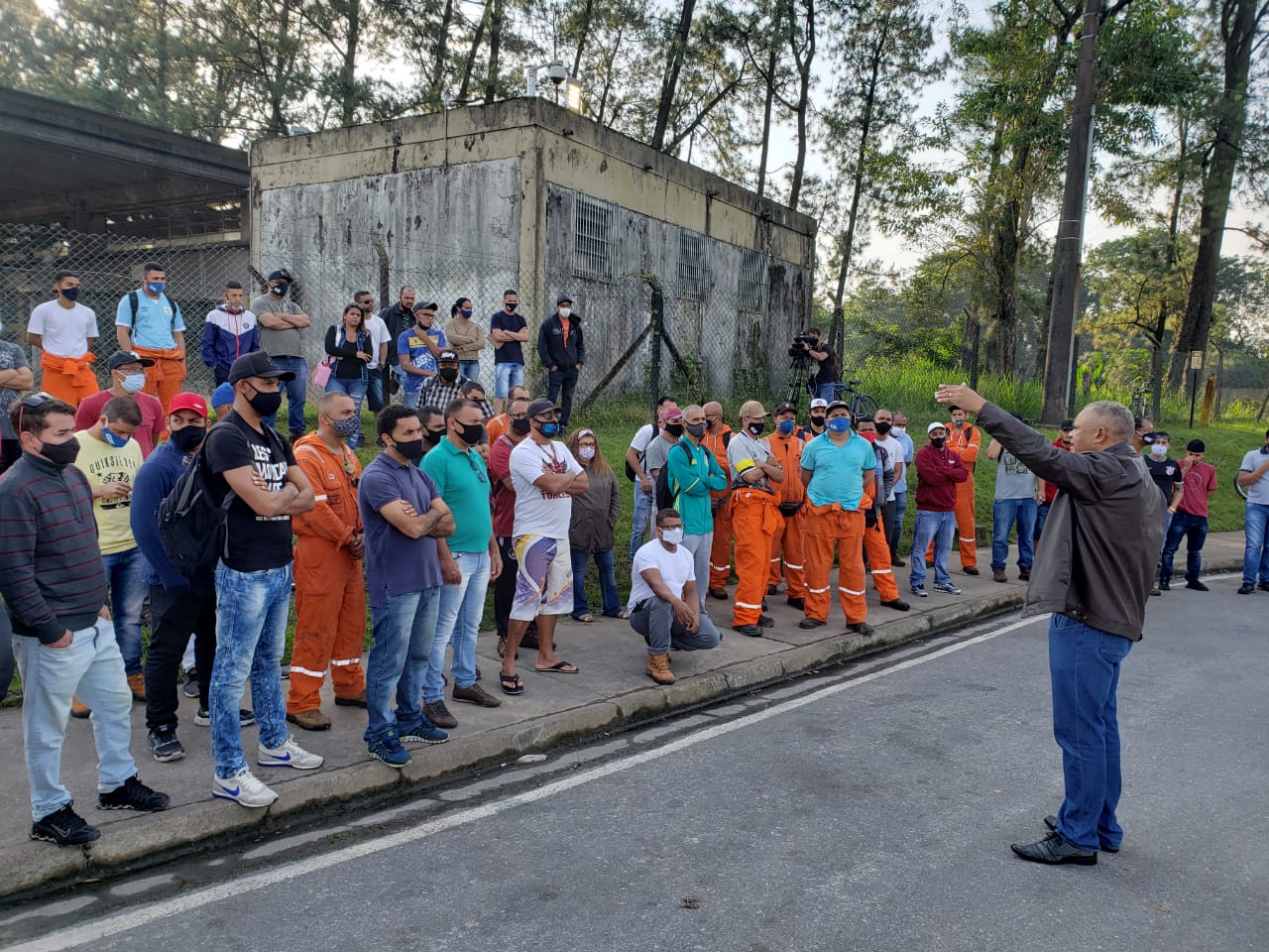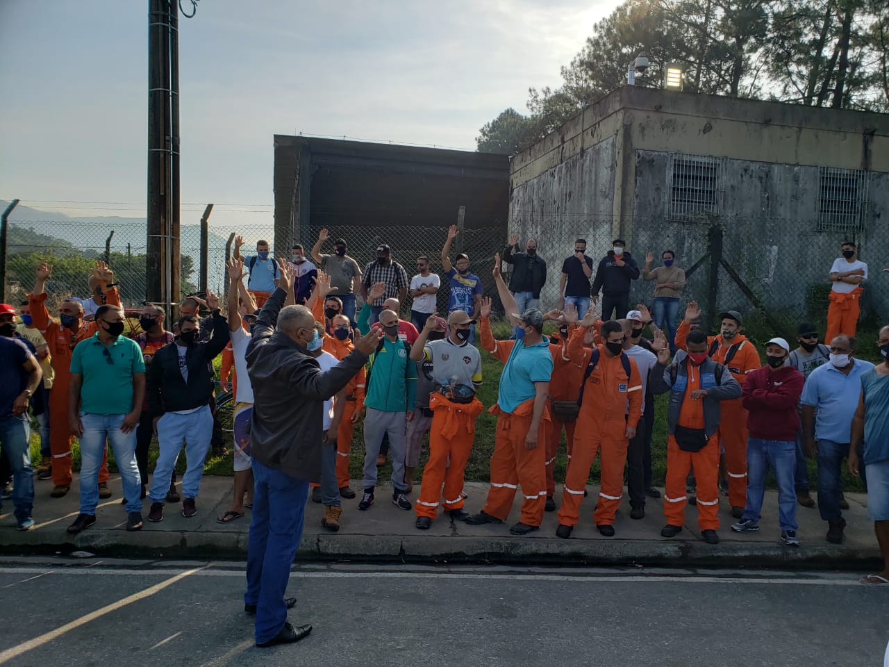Mais um dia de assembleia na Refinaria Presidente Bernardes (RPBC), em Cubatão. Os trabalhadores da G&E Engenharia reafirmaram, através de assembleia, a disposição de luta até receberem os pagamentos atrasados.