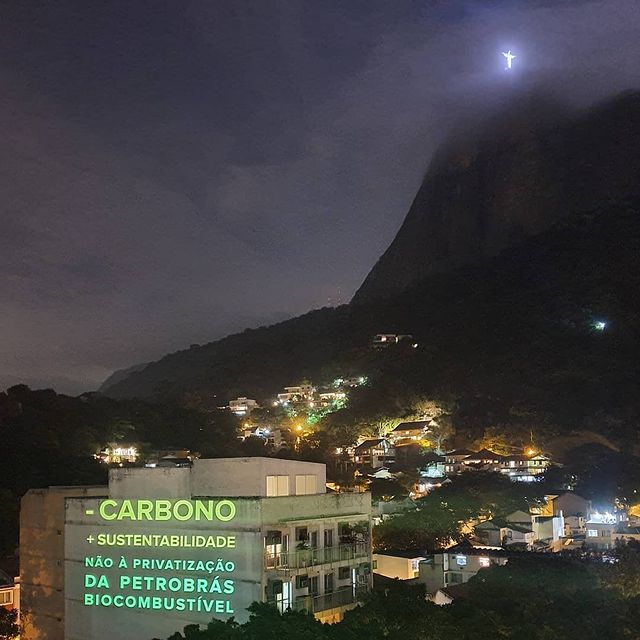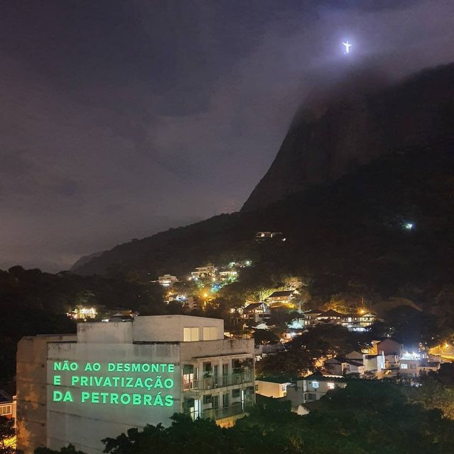 Durante três horas, o OSP projetou diversas artes, fotos e mensagens contra a privatização da Petrobrás, promovida pelo governo federal e cujos ativos estão sendo vendidos a preço de banana, em defesa de uma política de preço justo dos combustíveis e em apoio à mobilização dos petroleiros. Também foram exibidos vídeos, explicando os motivos da greve.