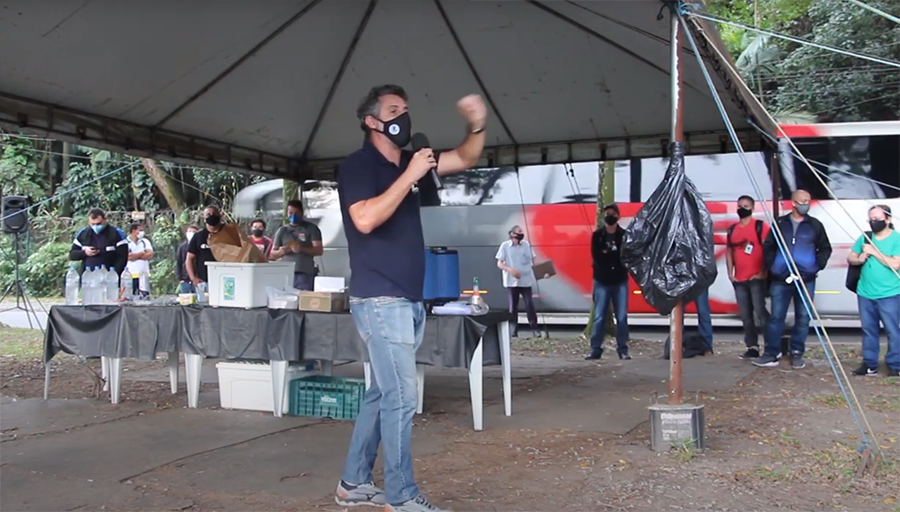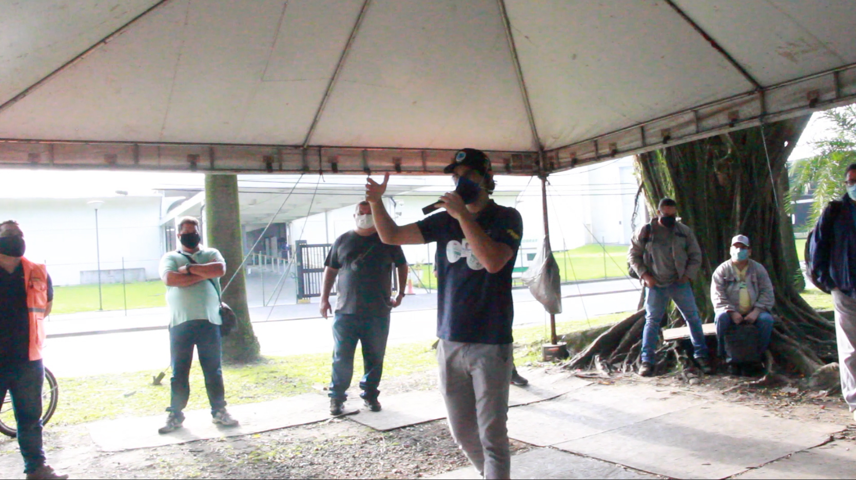 Como foi dito na barraca, hoje de manhã, “quem fica de joelhos para a cartilha bolsonarista é a chefia, os trabalhadores não ficarão encurvados, aceitando assédio na RPBC”.