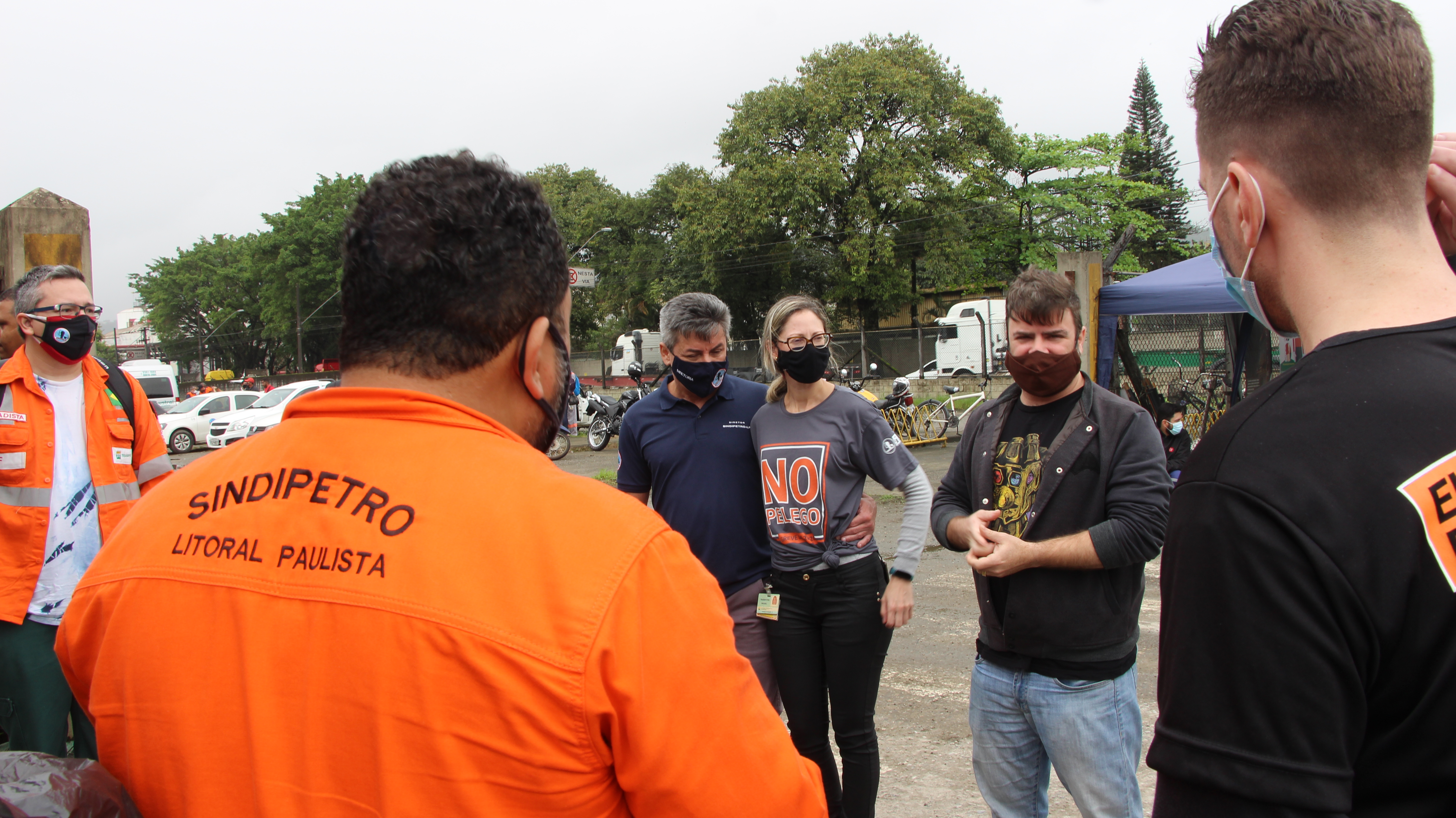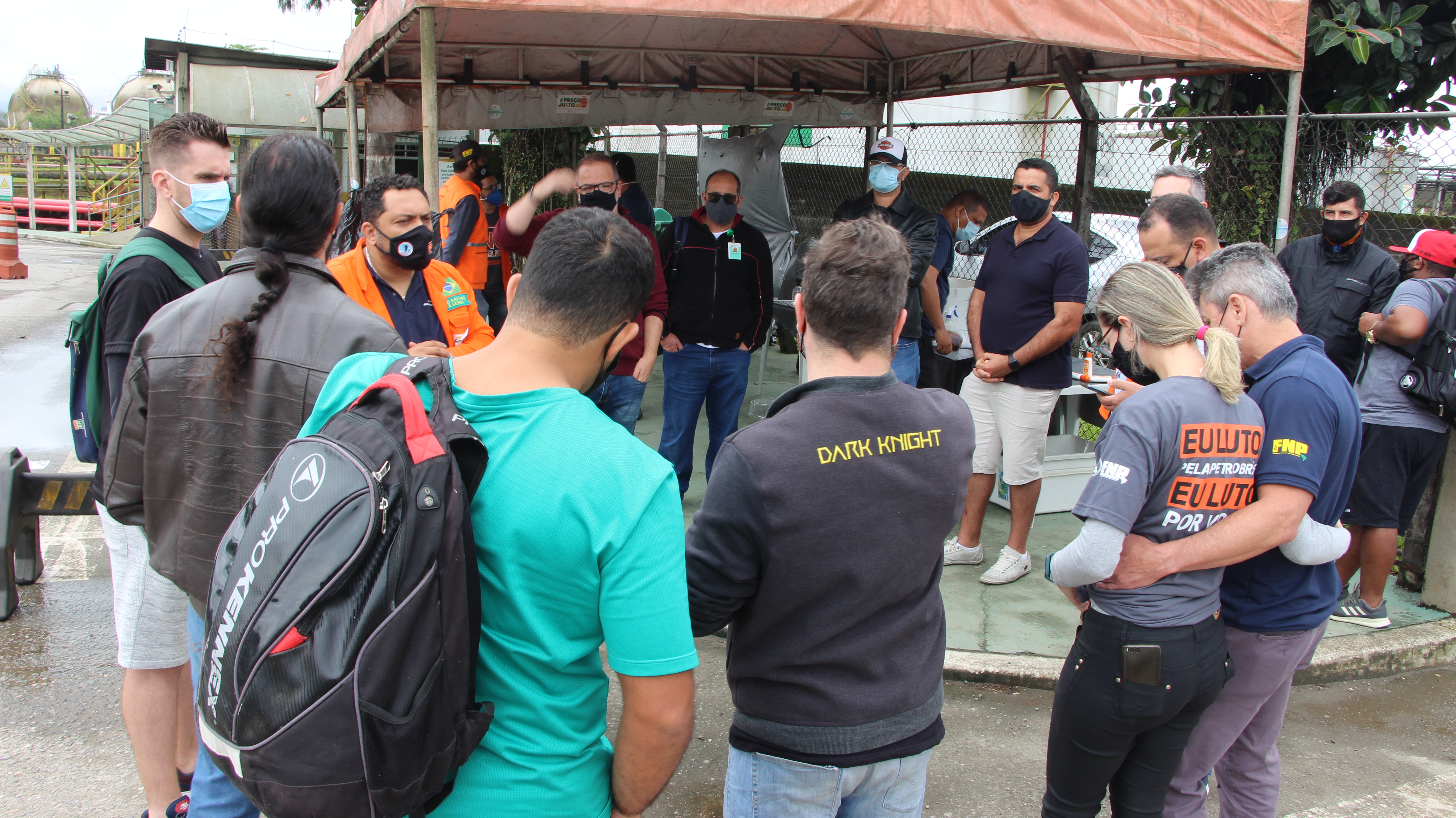Os petroleiros do terminal Transpetro Alemoa, de Santos, iniciaram ontem, quinta-feira (16), greve na unidade, contra a redução do efetivo e pela segurança do terminal, com o corte da rendição, no turno das 19h. Nesta sexta-feira, os trabalhadores terceirizados, juntamente com os petroleiros do turno, participaram do protesto em frente à unidade, organizado pelo Sindipetro-LP, com o intuito de fazer com que os gestores da Petrobrás e Transpetro voltem atrás da decisão de diminuir o efetivo. O ato teve a participação dos petroleiros do Sindipetro Unificado São Paulo e apoio do sindicato da Construção Civil e dos metalúrgicos, que representam os trabalhadores terceirizados.