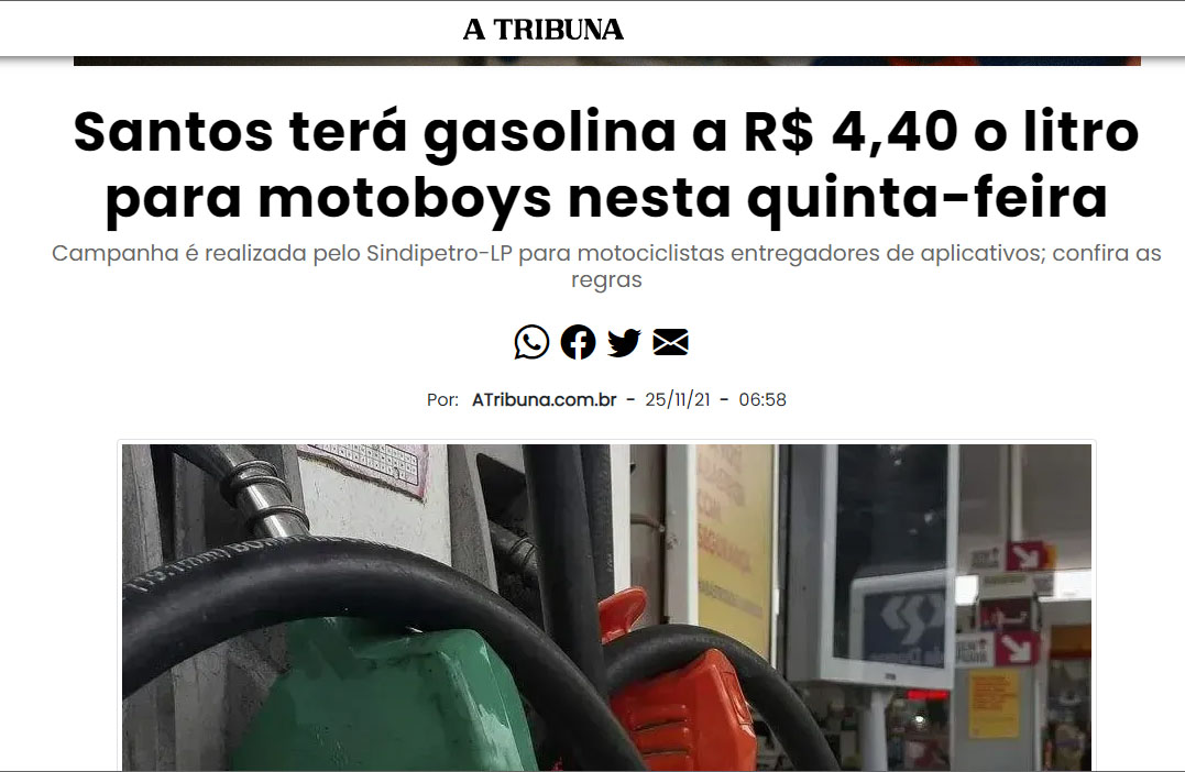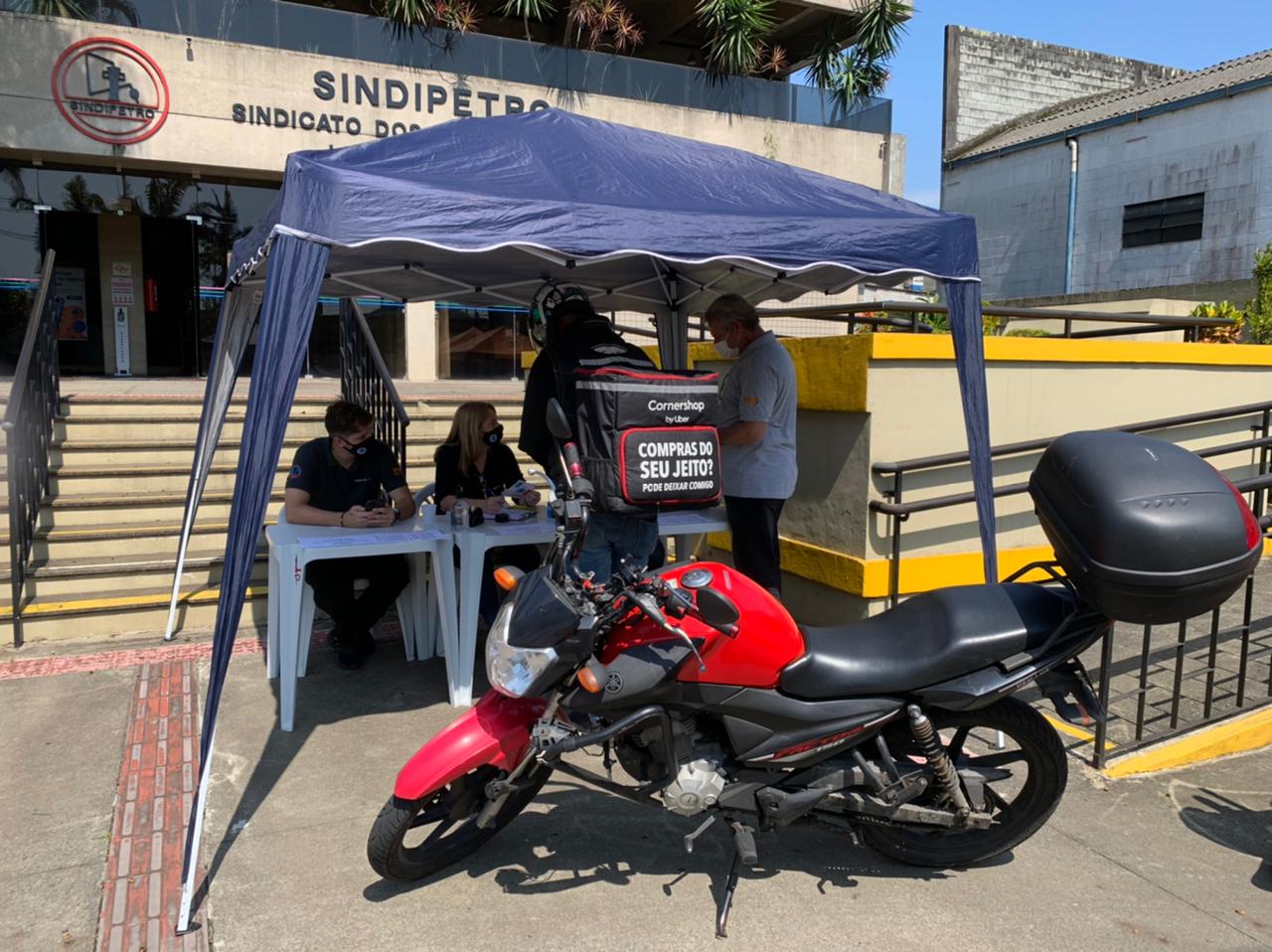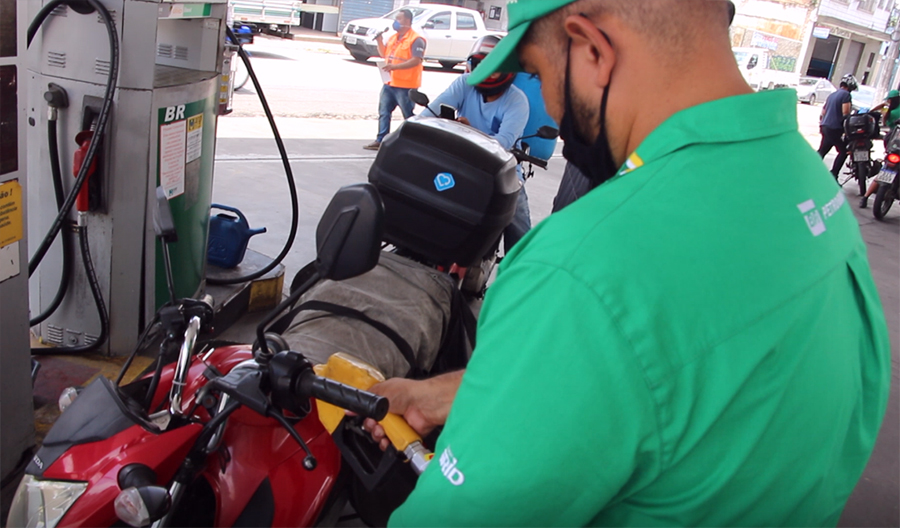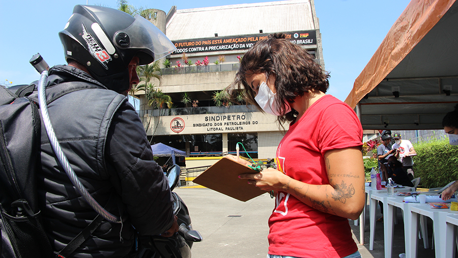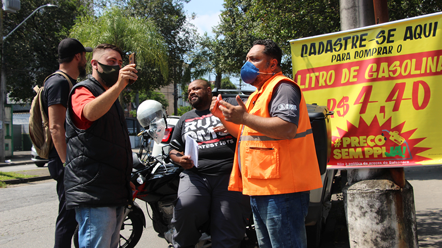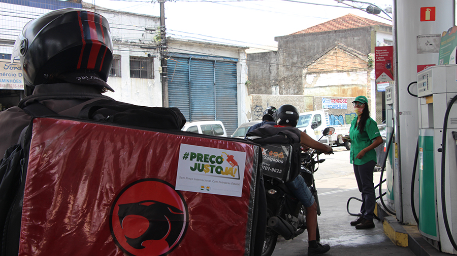 Motofretistas de aplicativo puderam nesta quinta-feira (25) abastecer pagando R$ 4,40 por litro de gasolina graças a uma iniciativa do Sindicato dos Petroleiros do Litoral Paulista, a Federação Nacional dos Petroleiros e o Observatório Social da Petrobrás.
