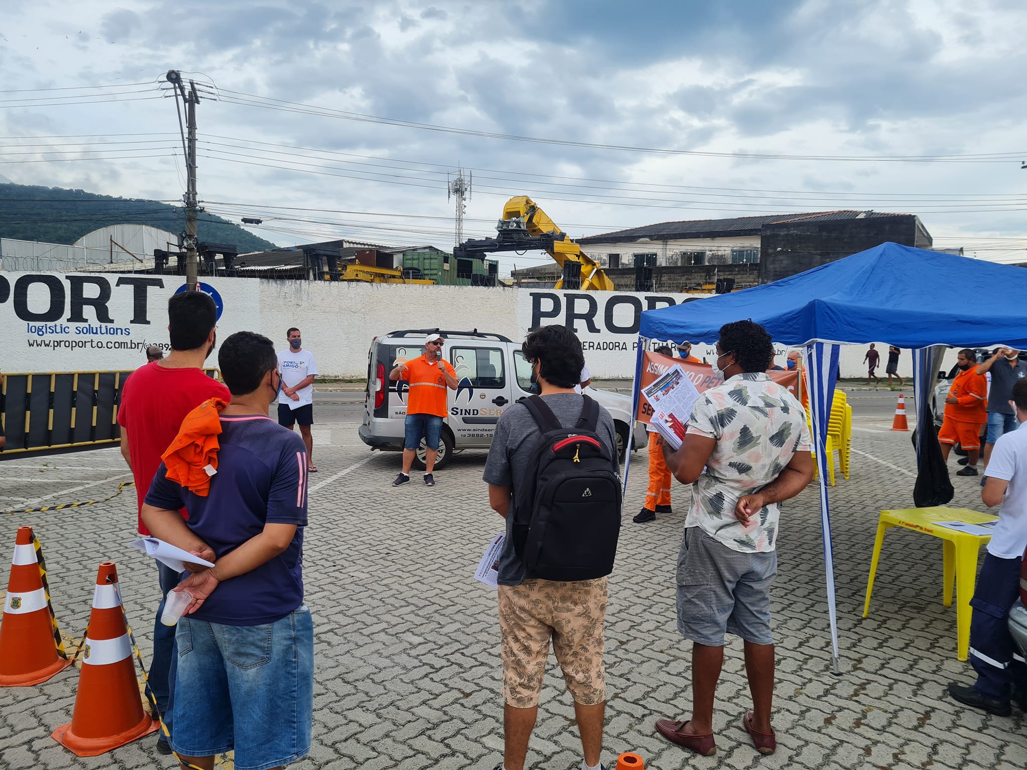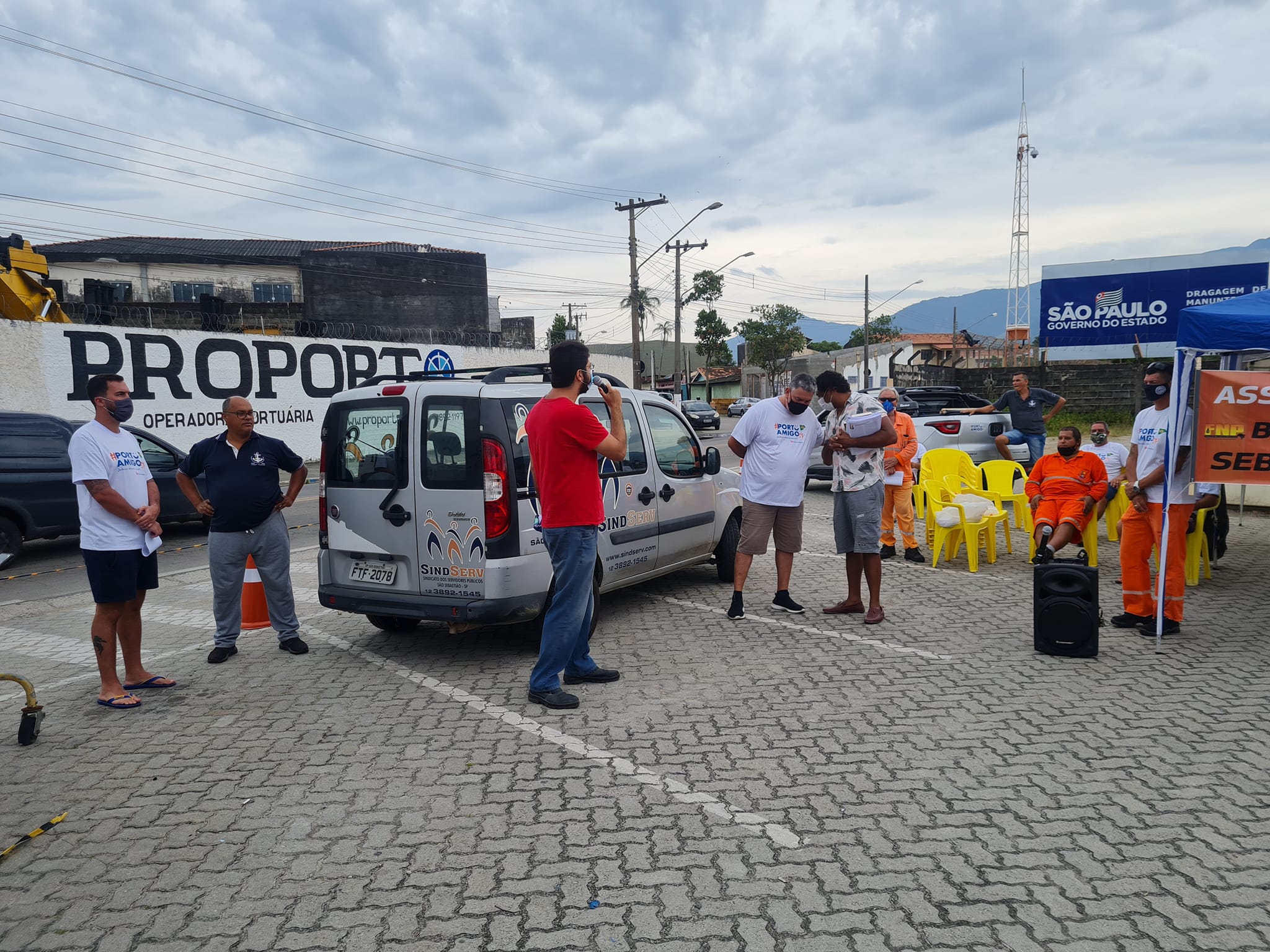 A Diretoria do Sindicato dos Petroleiros do Litoral esteve na manhã desta sexta-feira (28) no Porto de São Sebastião para apoiar a luta dos trabalhadores portuários. O pleito acontece também em todo o país e irá durar 12 horas. A luta é contra a Desestatização da Autoridade Portuária. Em São Sebastião, a mobilização é também pela municipalização do Porto da cidade.