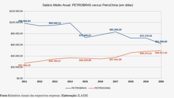 “Para uma análise correta da situação, devemos, portanto, comparar a remuneração dos trabalhadores da Petrobrás com as demais empresas do setor que concorrem no mercado mundial, isto é, as grandes empresas internacionais responsáveis pela extração de petróleo e gás em todo o mundo. Nesse sentido, o presente estudo compara a remuneração média dos trabalhadores das principais empresas de capital aberto do mundo, cujos dados salariais foram divulgados” Um limite é que as empresas estadunidenses do setor não divulgam informações salariais, como a EXXON MOBIL e a CHEVRON. Ainda assim, conseguimos uma amostragem significativa que abrange gigantes do setor como a empresa norueguesa EQUINOR, a britânica BP, a francesa TOTAL, a italiana ENI, a espanhola REPSOL e as chinesas PETROCHINA e CNOOC” – disse.