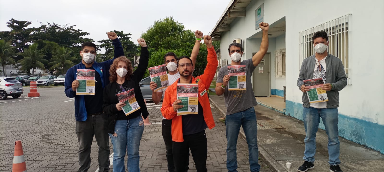 Petroleiros do Litoral Paulista protagonizaram mobilizações, na manhã desta quarta-feira (02), pelo Acordo Coletivo da categoria e em defesa da Petrobrás. Os protestos são parte do ato nacional unificado contra a privatização da empresa e foram marcados na data em que as duas federações entregam as pautas reivindicatórias. As paralisações ocorreram na RPBC e UTE-EZR, em Cubatão, no Tebar, em São Sebastião, e na UTGCA, em Caraguatatuba, e no aeroporto de Jacarepaguá, no Rio de Janeiro, por onde embarcam os petroleiros das plataformas. Os atos tiveram início às 7h. No Edisa Valongo, em Santos, foi feita panfletagem no horário de almoço.