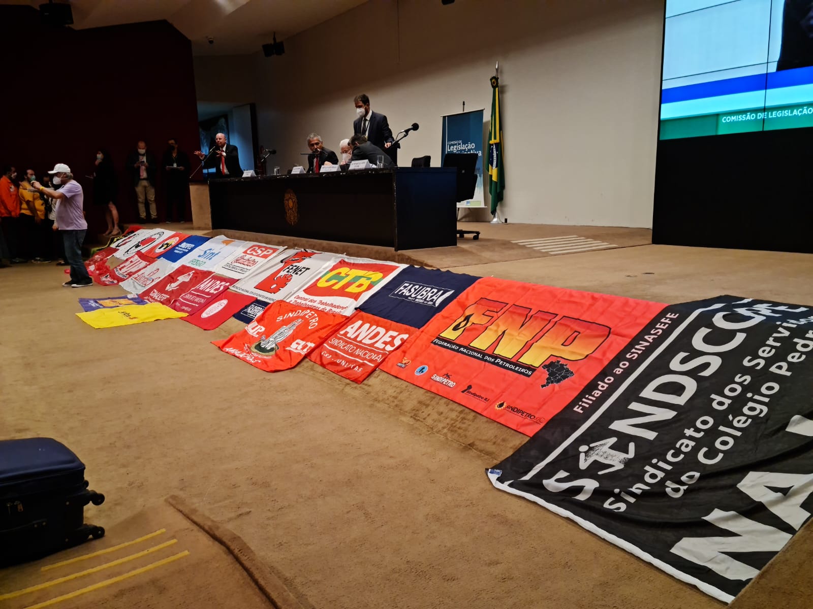 No início da tarde, a Brigada esteve presente na Audiência Pública CLP, contra as privatizações, os cortes na educação e os vetos no governo Bolsonaro, realizado no Auditório Nereu Ramos, em Brasília.