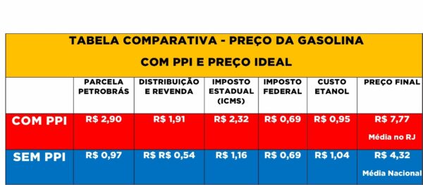 Diante disso fica evidente que a retirada do PPI teria um impacto mais significativo no preço final, do que o projeto de lei de Bolsonaro e Paulo Guedes que limitou o ICMS nos estados em 17%. Na verdade, o preço com PPI além de contribuir para o crescimento da inflação, ainda faz crescer artificialmente arrecadação do ICMS e de outros impostos.