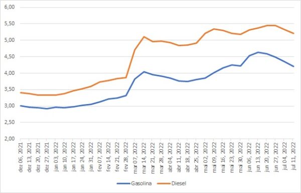 “O ministro de Minas e Energia disse haver estoque de diesel para 50 dias no Brasil. Isso não é um nível de estoque problemático, a questão é se haverá ou não a falta de diesel no mercado internacional, já que o Brasil está importando 30% do que consome de diesel. Até agora o alarme sobre uma possível crise de oferta no mercado internacional está diminuindo, até porque o considerável aumento da taxa de juros dos EUA impacta negativamente as economias de todo o restante do mundo, aumentando as chances de uma nova crise econômica. E isso fez com que a demanda do diesel (que já vinha desacelerando) se arrefecesse. Os estoques mundiais começaram a subir levemente, o que deixa cada vez mais longe essa crise global do diesel” – explica o economista.