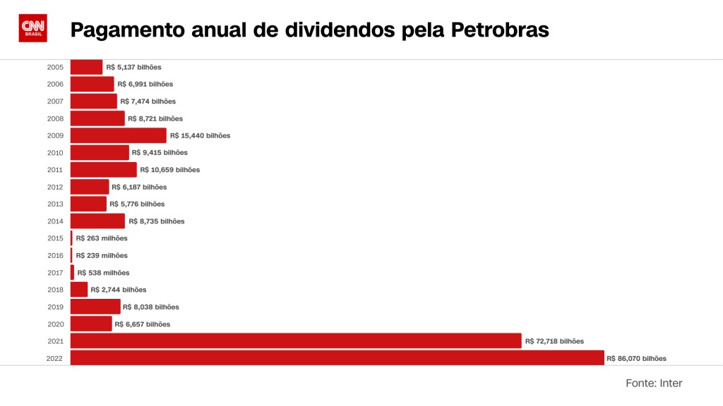 Com um salto no lucro nos últimos anos, a Petrobrás tem constituído aumento nos repasses de dividendos aos acionistas da companhia. A empresa realizou o pagamento da segunda parcela de dividendos aos acionistas, aprovada pelo Conselho de Administração da companhia em maio, nesta quarta-feira (20). Ao todo, serão distribuídos cerca de R$ 48,5 bilhões.
